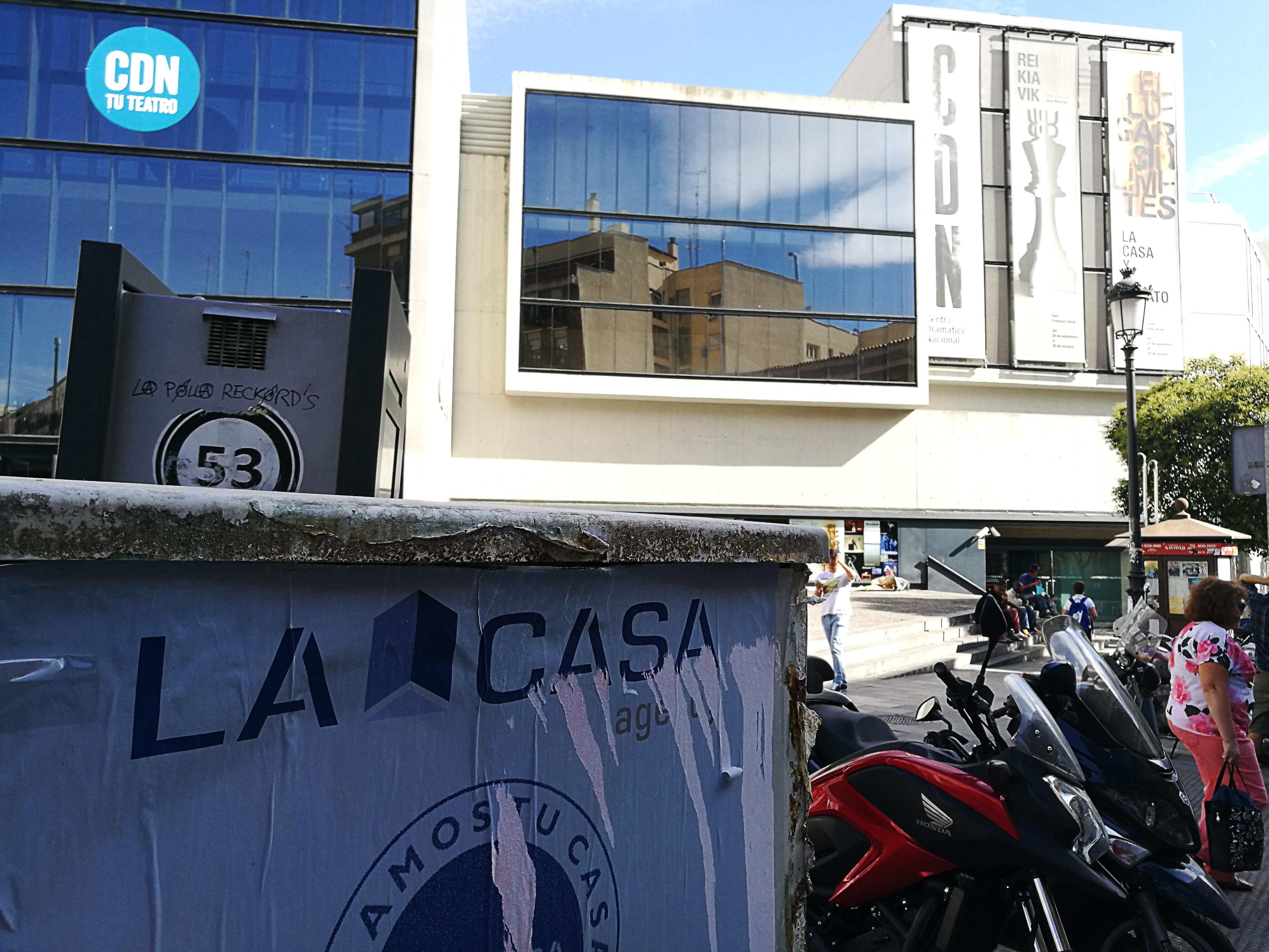 El primer día que fui al teatro Valle-Inclán, mientras me comía un pincho de tortilla en el eterno gallego de enfrente (eterno como algunos de sus camareros), vi en la puerta del teatro la figura inconfundible de Carlos Marquerie, con su chaqueta blanca y su sombrero. Con la distancia y esos aditamentos, le quité una buena pila de años de encima porque me acordé de su figura veintimuchos años atrás, cuando, recién llegado a Madrid, fui a la Sala Olimpia a ver Medeamaterial, de Heiner Muller, que él había dirigido con su entonces compañía, La Tartana. Una obra que me dejó conmocionado, sintiendo que si alguien hacía teatro “en serio” en Madrid, ese era Marquerie y su compañía. Aunque no pueda hablar de la Olimpia como “mi casa”, ya que apenas trabajé en ella de refilón, echando una mano a Olga Mesa con sus Solos, hace ya también una pila de años, sí que podía sentir un cariño especial por un lugar por el que había visto desfilar propuestas muy importantes en la definición de una época escénica madrileña trascendental. El testigo del momento luminoso de la Olimpia como crisol de la escena de vanguardia, lo recogió el Teatro Pradillo en su primera época. Ya todos sabéis, las primeras obras de Rodrigo, la Ribot, Olga Mesa, Elena Córdoba, Mónica Valenciano… y un largo etcétera, entre el que se incluían, cursos, encuentros, publicaciones… Y, sobretodo, personas, muchas personas jóvenes y valientes, con ganas de comerse el mundo o lo que fuera, con talento y energía desbordante.