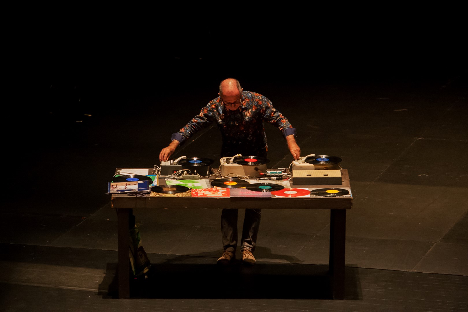 Jueves. 20:30. Sala Valle-Inclán del Centro Dramático Nacional. Plaza de Lavapiés. Primera sesión del primer programa de Contar para / sobre vivir (el viernes se repite y el sábado y domingo habrá un segundo programa con otros protagonistas). Se anuncia como programa doble. Cuatro propuestas de encargo para la ocasión: Orquestina de Pigmeos (Nilo Gallego y Chus Domínguez), Itxaso Corral, Pablo Messiez y Alejandro G. Ruffoni. Una pausa en medio. Más o menos, media hora cada uno (en principio). Un programa muy heterogéneo bajo un lema común, dentro de un ciclo que, además de llamarse El lugar sin límites, también tiene título: La casa y el relato. Me he leído los textos de cada una de las propuestas, de la introducción del ciclo y del texto de presentación del programa pero, sinceramente, todos estos textos me dan igual. Me inflan un poco la cabeza y me desorientan un poco, como si me invitasen a adentrarme en un spin-off dentro de la subtrama de la subtrama de la trama hasta que, al final, ya no sé ni cómo se llamaba lo que voy a ver, ni de qué va. Ni me importa, porque no son esos textos los que me traen hasta el Valle-Inclán, por segunda vez en mi vida (la primera fue en la pasada edición de El lugar sin límites). Vengo desde Barcelona a ver esto porque quiero ver qué se cuece de nuevo en El lugar sin límites y esta es la única semana que puedo desplazarme a Madrid. Será también porque conozco y sigo el trabajo del 75% por ciento del cartel (al otro 25% lo conozco de referencias) y me da igual de qué se trate esta vez: iría a ver cualquier cosa con este cartel, aunque no anunciasen más que los nombres. Eso sí, en Barcelona me he visto los vídeos de las entrevistas que les han hecho a los protagonistas de esto, mientras comía, proyectados en pantalla gigante en el salón de mi casa, como si estuviese viendo la tele. Y me ha interesado mucho más que la mayoría de programas que echan en la tele. A pesar de lo caras que son las entradas (25€ si no has sido lo suficientemente previsor como para comprar un abono para conseguir que tu entrada cueste la mitad) la sala está abarrotada: cerca de 200 personas.